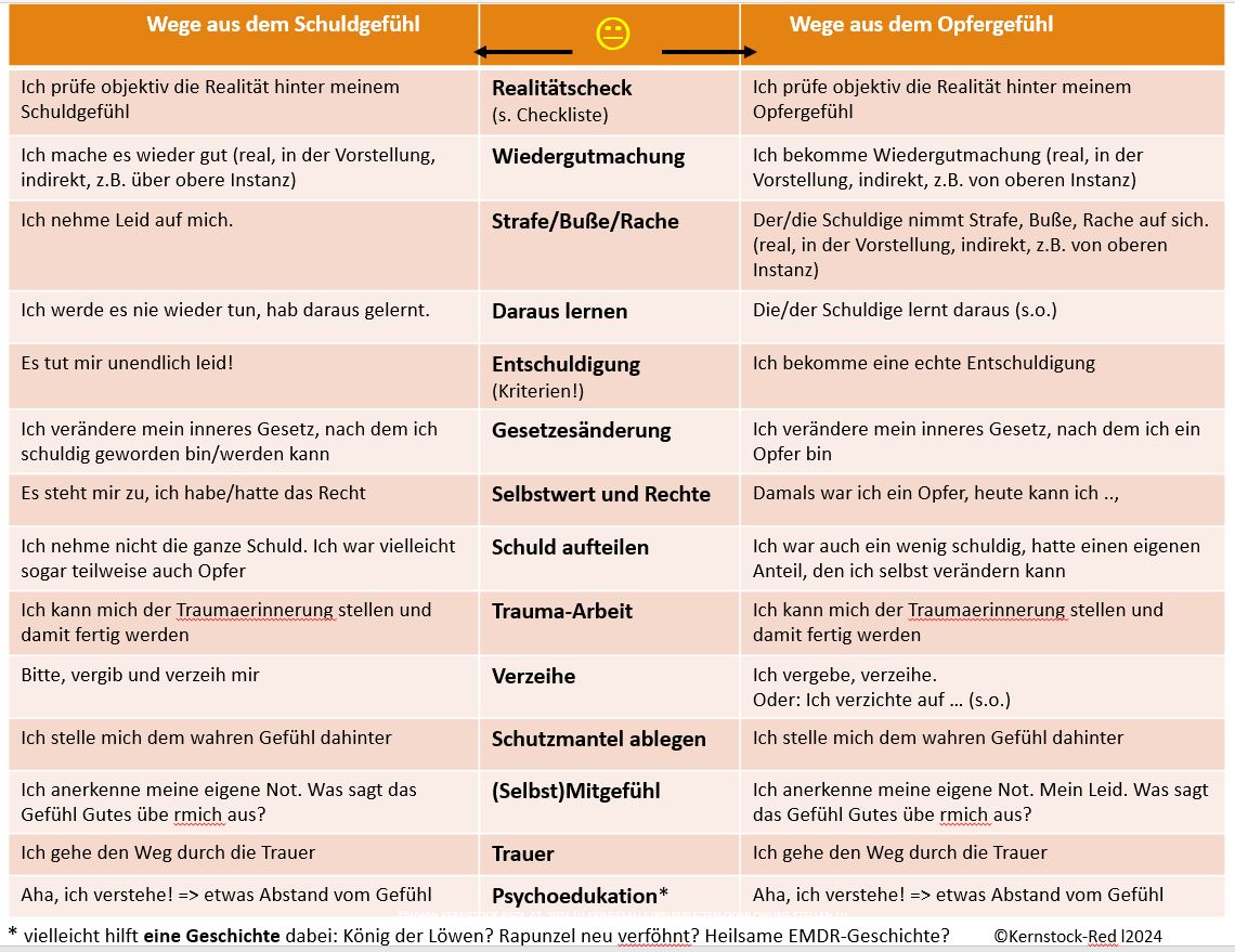 - Viele Wege*, um Schuld- und ihre Kehrseite, die Opfergefühle, ablegen und hinter sich lassen zu können: alle auf einen Blick.
